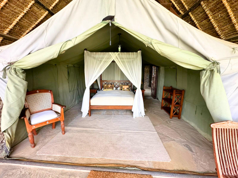 The camp features 4 safari-style en-suite accommodation tents designed to offer guests an immersive bush experience while maintaining comfort and privacy. A mess area comprising a raised lounge, living area, and dining area overlooking Kedong Ranch, a swimming pool with BBQ area, and a 2-bedroom cottage.