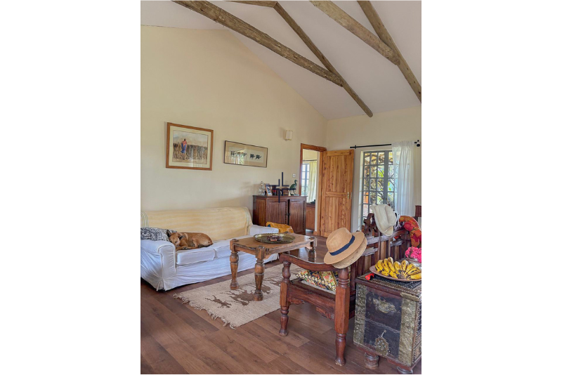 A charming, shaded courtyard entrance leads to a spacious, open-plan sitting/dining room with vaulted ceilings and a cosy wood-burning stove. A live-in verandah, accessed by French doors and running the length of the sitting/dining room offers spectacular views of the Lolldaigas and Mount Kenya. A fitted kitchen leads off the sitting/dining room and has a pantry and a separate entrance. One wing of the house accommodates the very generous ensuite master bedroom, with shower, bath with a view, WC and wash basin. On the other side of the sitting/dining room are two large ensuite bedrooms, with showers, WC and wash basin. All the bedrooms have very ample storage/dressing areas.