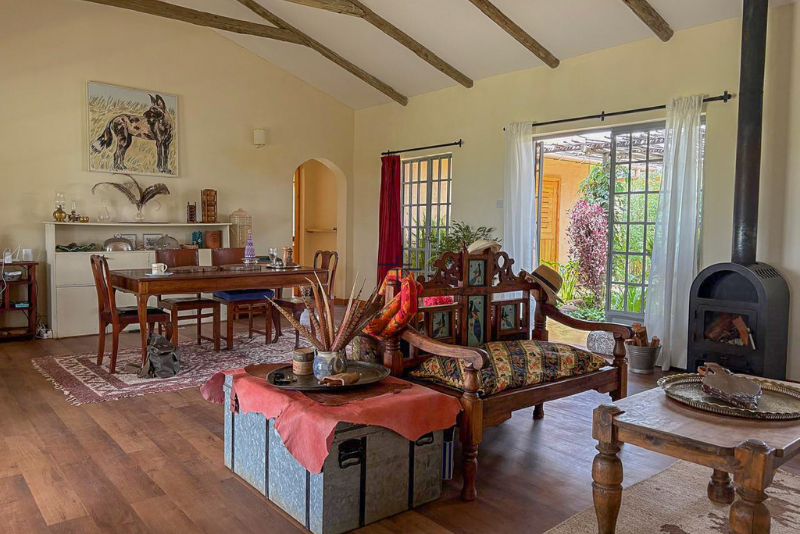 This is a 3-bedroom courtyard-style house for sale in Balungi, Nanyuki. The home sits on 2.5-acres, within 268-acres of pristine wilderness only 25-minutes from Nanyuki town. The home enjoys wonderful views of Mount Kenya.