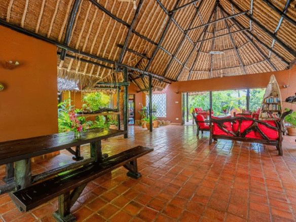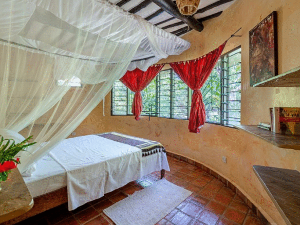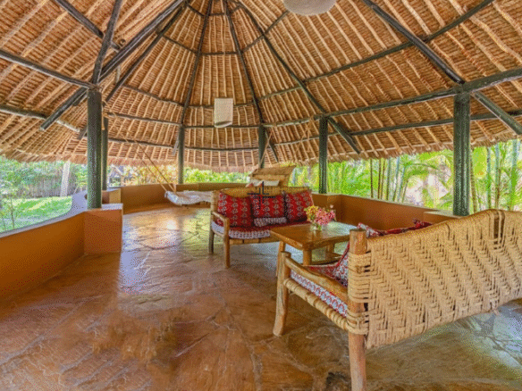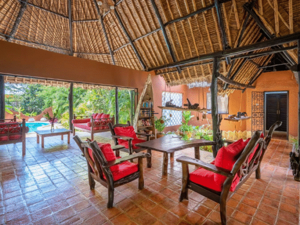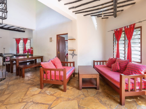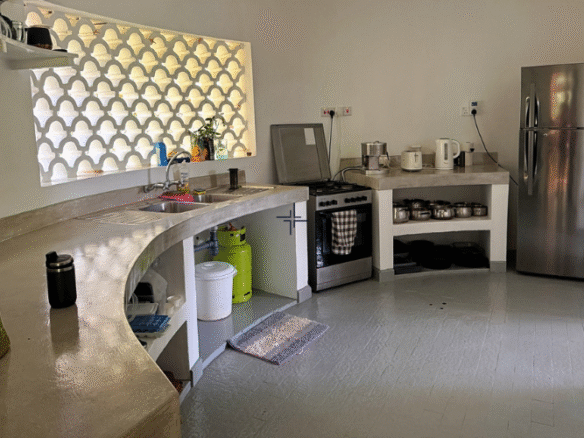 The 3-bedroom main house offers 260 sqm of well-planned living space. It comprises a generous sitting/dining room that opens onto a live-in verandah overlooking the swimming pool, a kitchen with a pantry, a dehumidifying room/strong room and three ensuite bedrooms. The living room features a makuti roof that was refurbished in 2022, while all bedrooms have proper ceiling finishes.