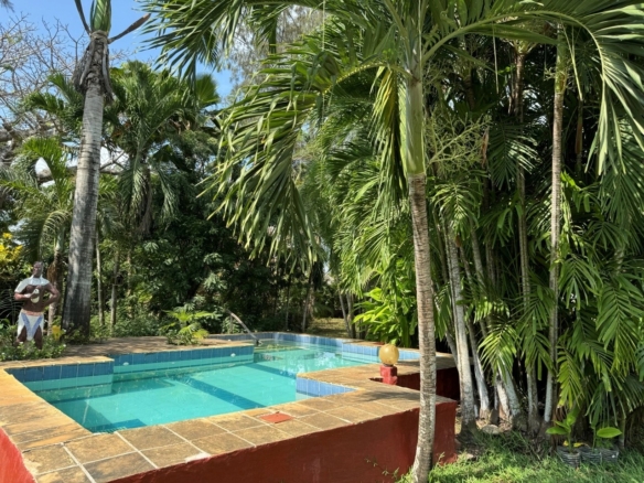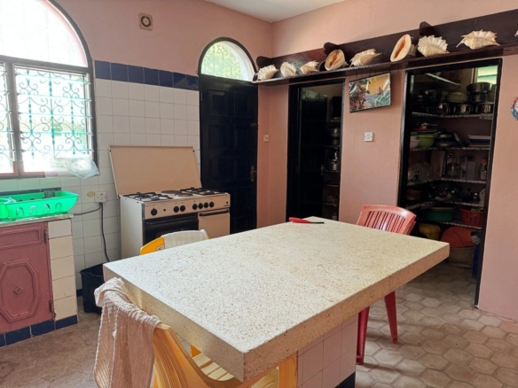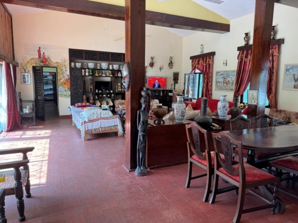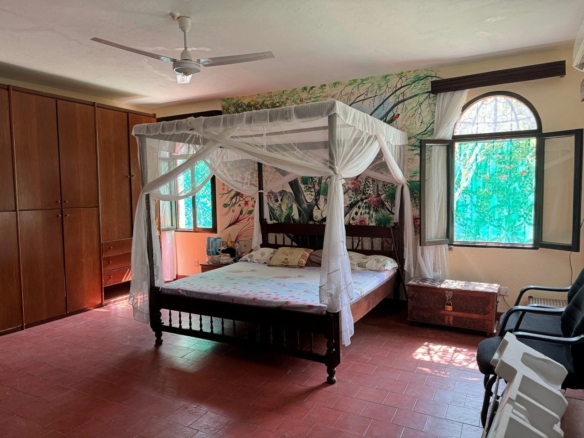 This charming 4-bedroom house for sale in Diani sits on a freehold 0.5-acre plot in a peaceful part of central Diani, just 820 meters from the beach. The property has a mature, well-maintained garden with shaded seating areas, established trees and a swimming pool.