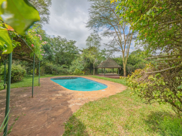 This is an amazing furnished 5 bedroom property for rent in Karen, Hardy. The property comprises a 3 bedroom main house and a 2 bedroom guest cottage on an expansive 4.2-acre garden with a swimming pool.