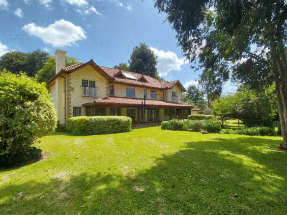 This exquisite 5-bedroom property for sale in Tigoni, Limuru, offers a harmonious blend of refined living and breathtaking natural beauty. Set on a sprawling 5-acre leasehold plot, the estate boasts a stunning landscape featuring a rehabilitated indigenous forest and a meticulously manicured garden. The flat terrain gently slopes, striking a perfect balance between serenity and sophistication.