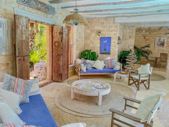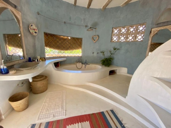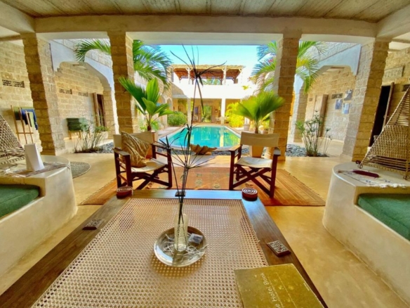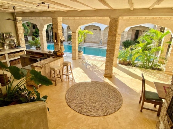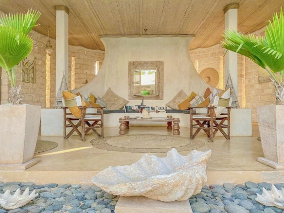 Access has improved, with a graded road leading from the main tarmac route. A smooth, traffic-free drive lined with baobab trees gives way to a coconut-carpeted lane that meanders gently through palm groves to this slice of heaven. Spacious and sophisticated, this stunning inner courtyard home is a paradise that needs to be seen to be believed. Those seeking a connection with nature will be attracted to the lush tropical backdrops, magnificent 360-degree views and the sounds of birdsongs and waves lapping the shoreline.