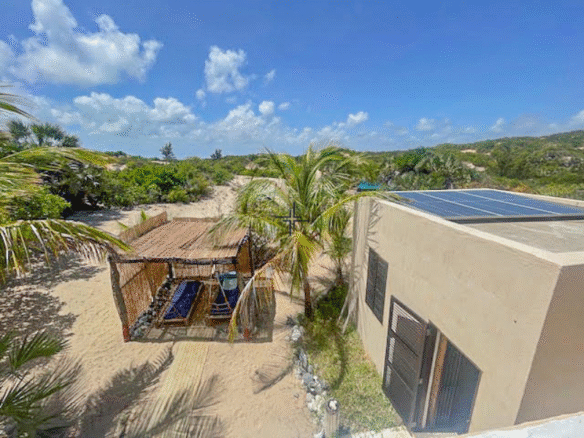 At the heart of the estate stands a beautifully maintained stone/concrete structure designed for effortless coastal living. This open-plan home blends bedroom, dining and seating areas into one light-filled space, with a separate kitchen and bathroom. Elevated on the landward side of the property, the home enjoys cooling breezes and sweeping, uninterrupted views of both sunrise and sunset from its generous rooftop terrace.