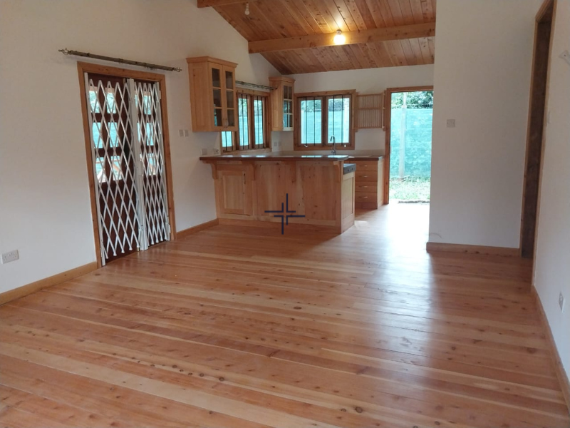 This 3-bedroom wooden cottage for rent in Karen offers a perfect blend of modern living and rustic charm. The standalone home is set on a beautifully manicured private garden. The cosy, unfurnished home features a sizeable wooden deck verandah, an open plan kitchen/sitting/dining room with a pantry in the kitchen area, an ensuite master bedroom and two additional bedrooms sharing a bathroom ensuring ample living space.