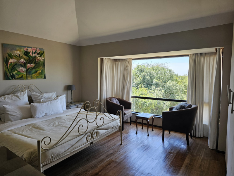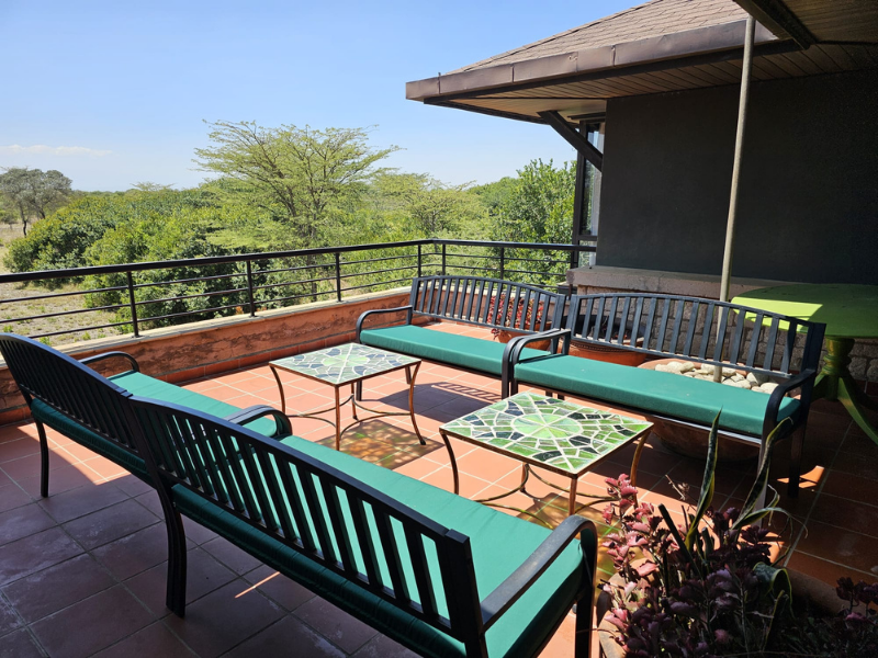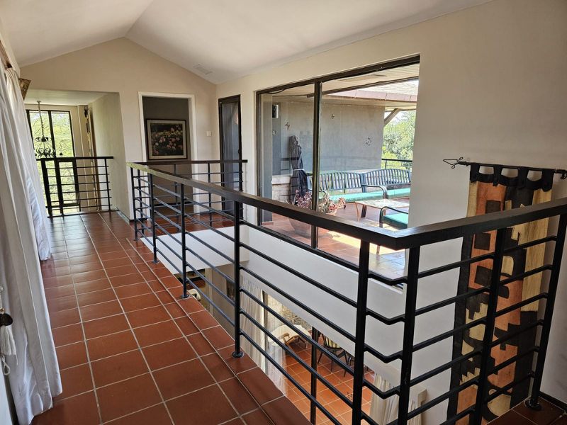 All bedrooms are ensuite, with one conveniently located on the ground floor and four on the upper level. The first-floor bedrooms open onto a spacious balcony, perfectly positioned to take in sweeping views across the estate and Ol Pejeta beyond.