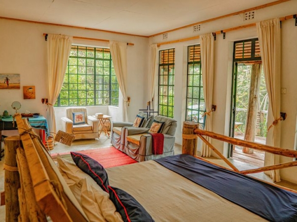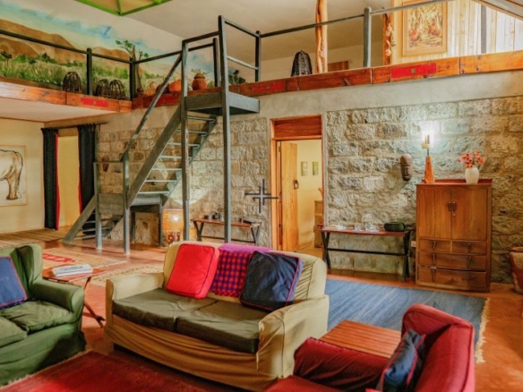 A naturalist’s paradise, this spacious 3-bedroom house for sale in Burguret, Nanyuki sits on 8-acres of freehold land with spectacular river frontage, an abundance of mature, indigenous trees (21 different species), wonderful birdlife and views of Mount Kenya. Situated only 10-minutes from the airstrip and One Stop shops and 25-minutes from Nanyuki, the house provides a wonderful blank canvas from which to create a perfect family home or holistic retreat.
