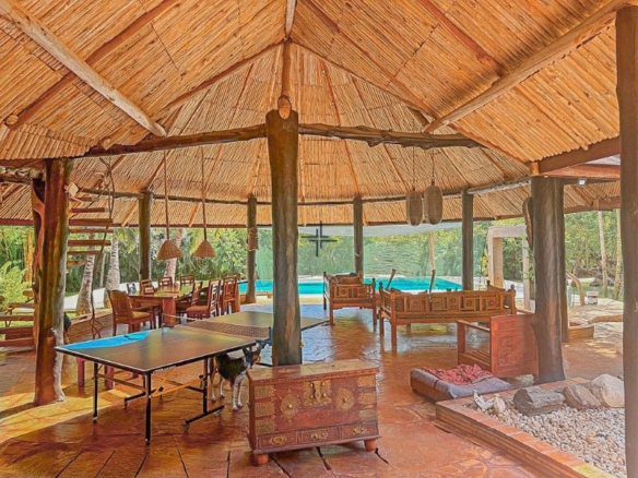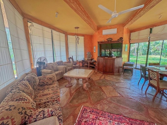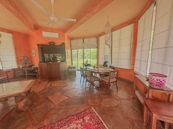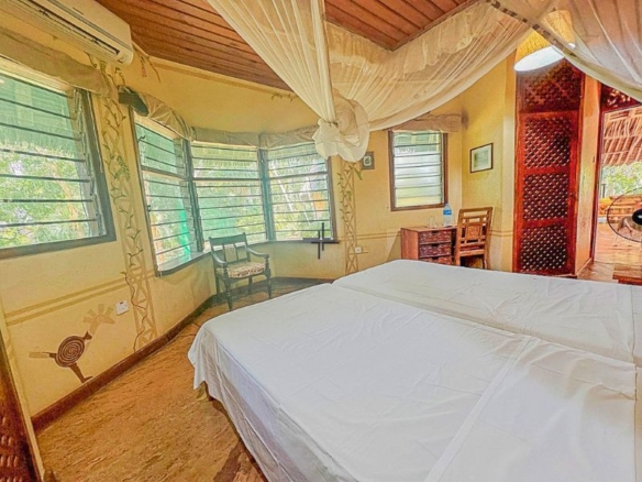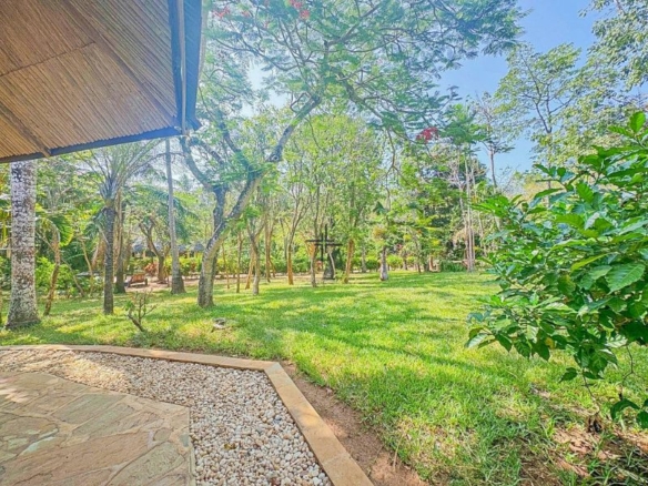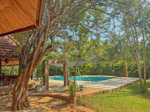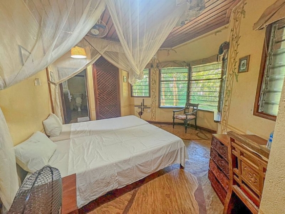 This is a charming 3-bedroom house for sale in Diani. The house sits on a freehold 0.7-acre plot within a secure 5-acre gated estate, just 1 km from the beach. The lush garden is surrounded by swaying palms, mature indigenous trees, and vibrant greenery, with a lovely swimming pool as its centerpiece.