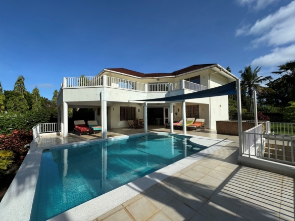 The well-designed home features a double-storey floor plan and boasts a ground floor with an open-plan kitchen/dining/sitting room. The lounge area leads out onto a lovely pool terrace looking out onto the lovely garden. The first floor hosts four double-sized, air-conditioned and en-suite bedrooms each leading onto a large “wrap around” terrace.