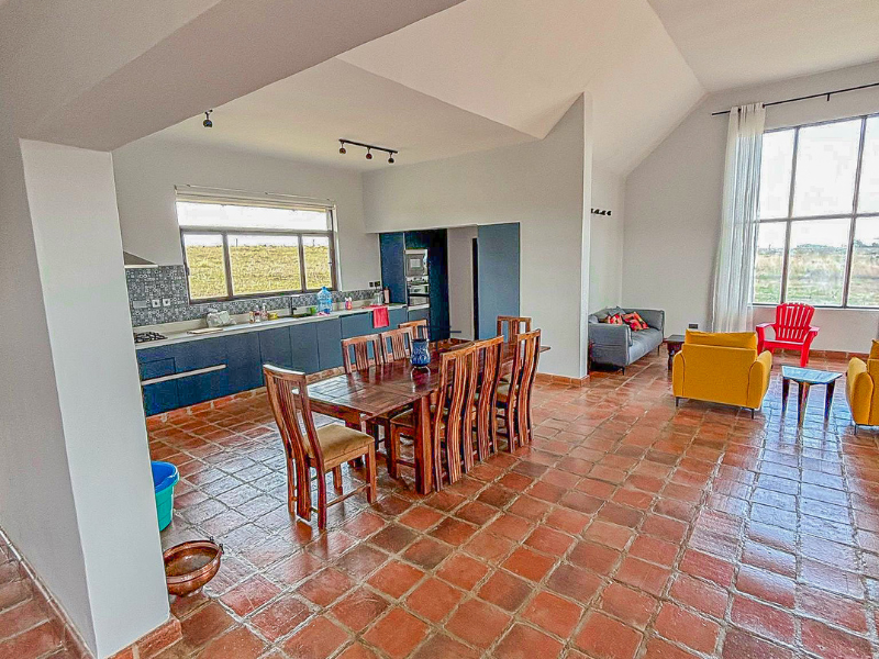This 4-bedroom house for sale in Ethi, Nanyuki, sits on a 6.5-acre plot within a 38-acre gated community on the Laikipia Plateau, offering clear views of Mount Kenya and Borana Conservancy in the distance. Built to a high standard, the double-storey home emphasizes low maintenance and incorporates both local and imported finishes, including glazed aluminium windows and doors, fitted kitchens and bathrooms and generous outdoor living areas.