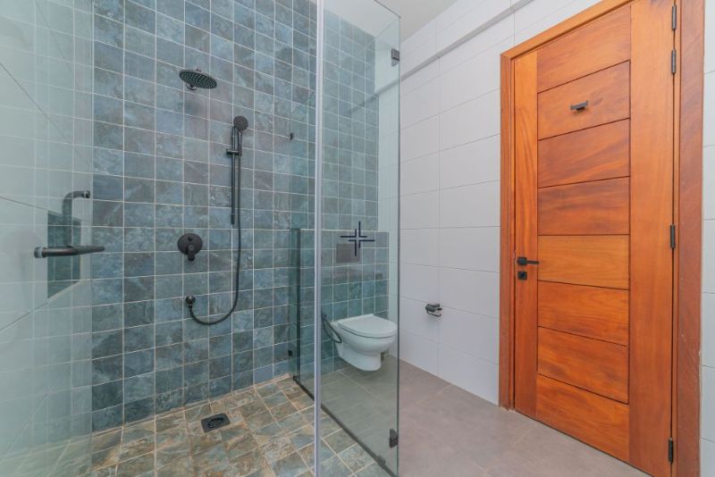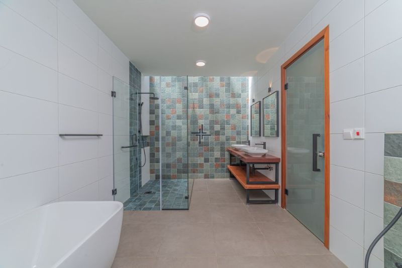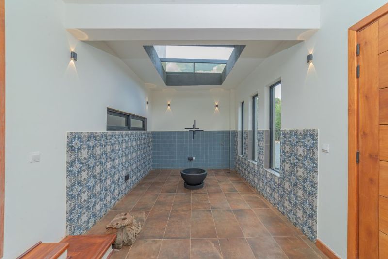 Upstairs are three ensuite bedrooms, each with walk-in closets and private balconies. The master suite further benefits from a private lounge and tranquil treetop views, creating a serene retreat. A generous roof deck crowns the home and is designed for sunset gatherings and effortless outdoor entertaining.