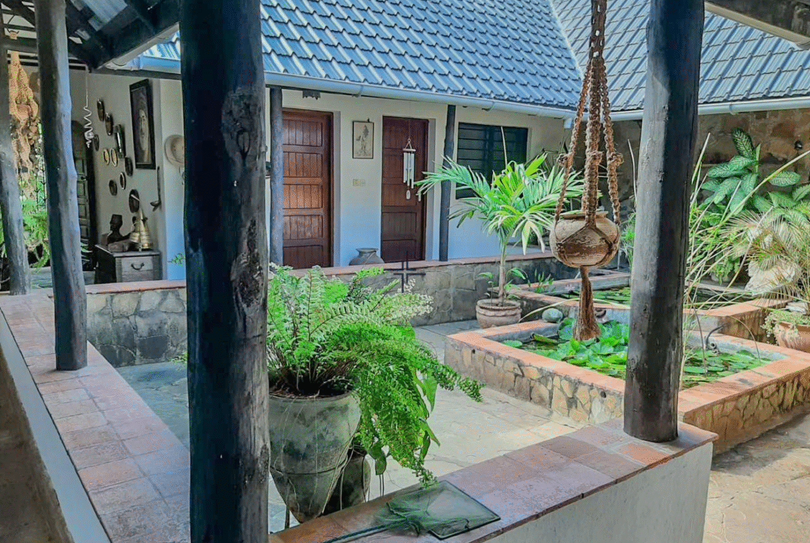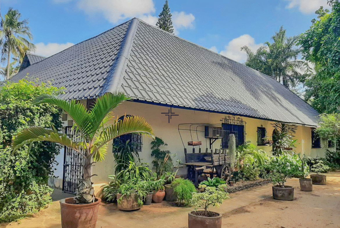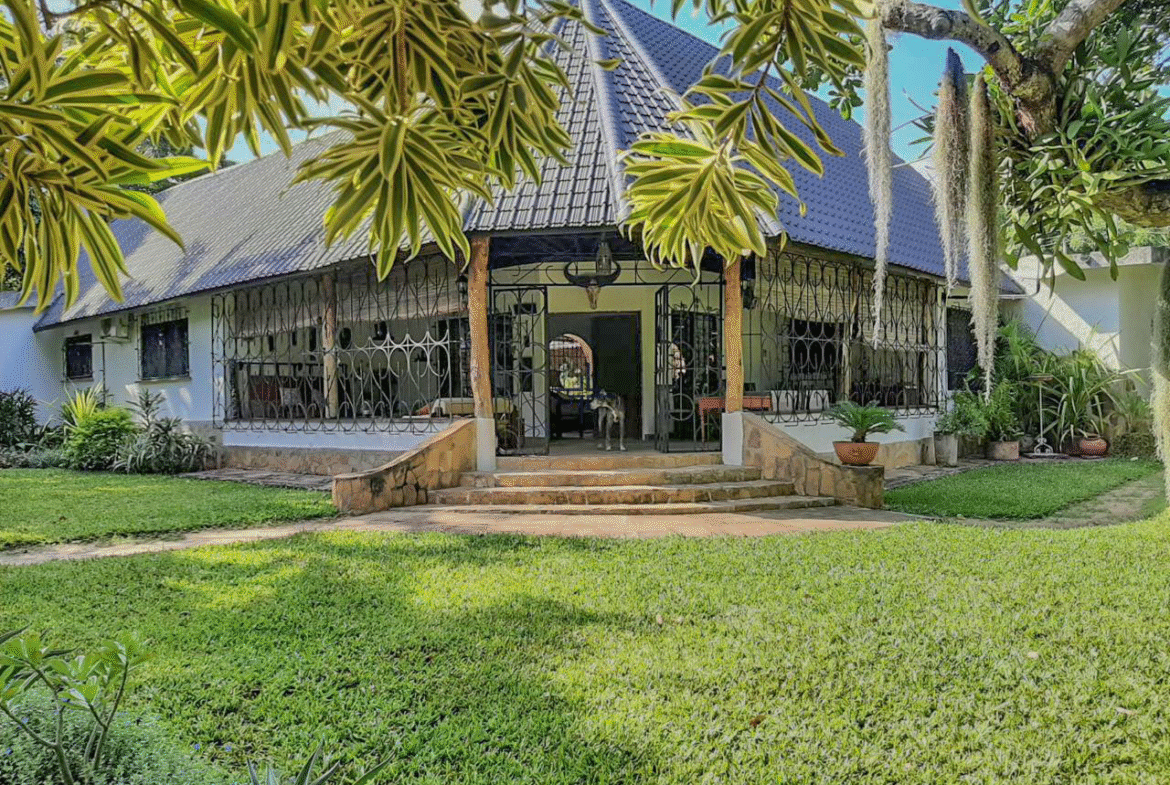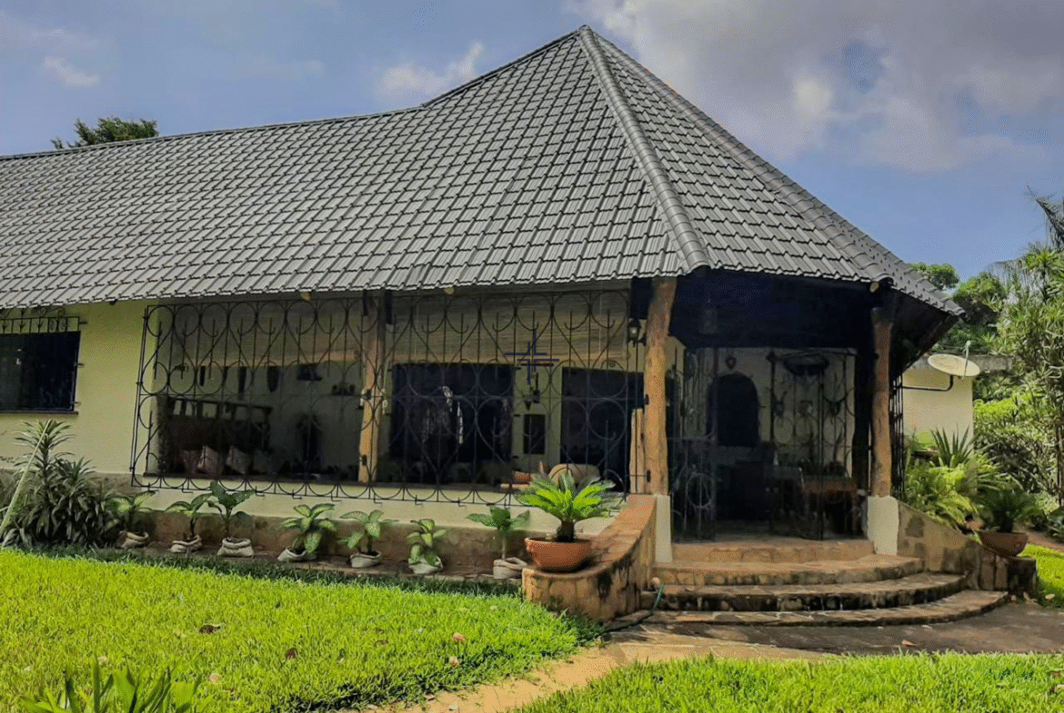 This is a courtyard-style house for sale in Mtangani, Malindi. The property sits on a 1-acre freehold corner plot with unparalleled access on three sides.
