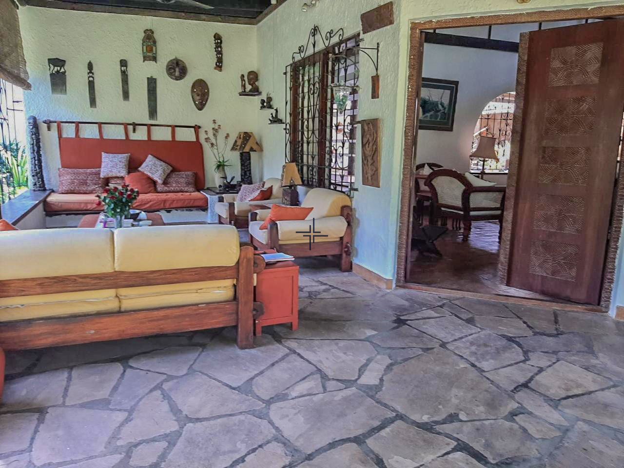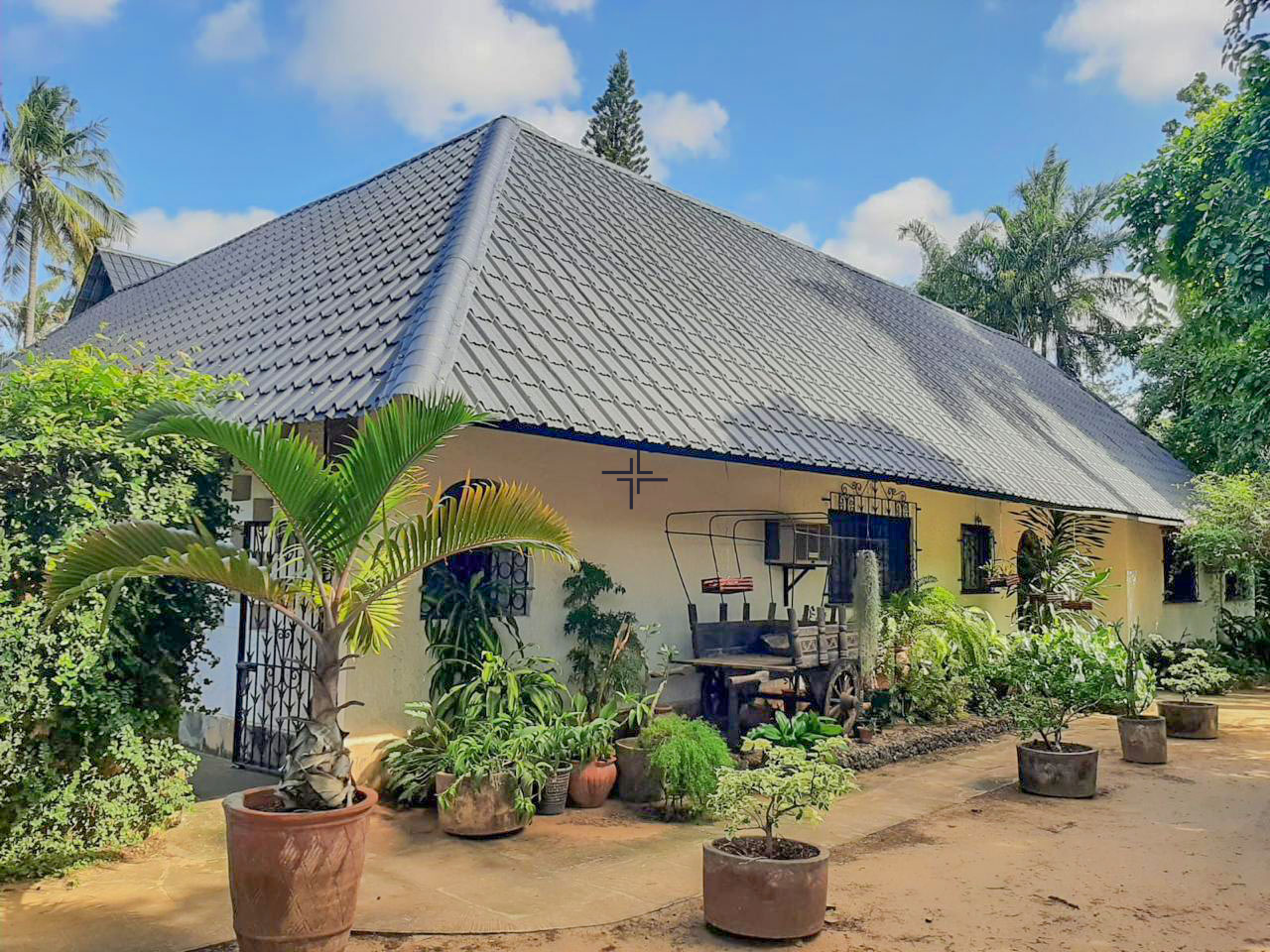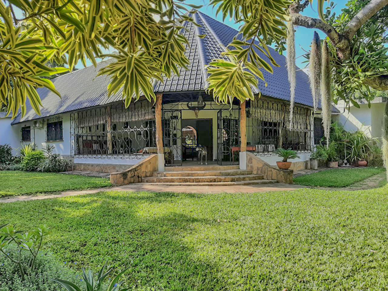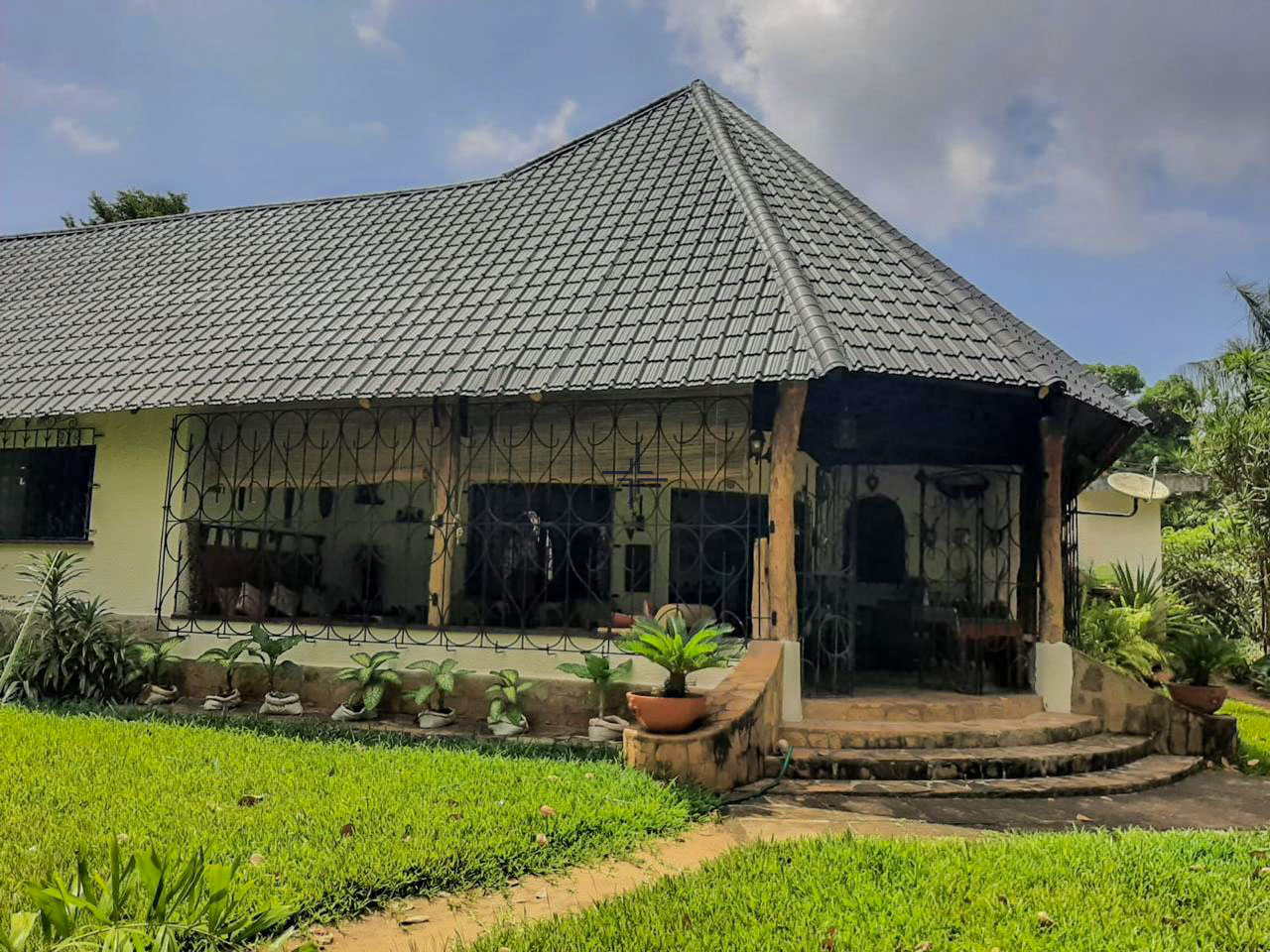 This is a courtyard-style house for sale in Mtangani, Malindi. The property sits on a 1-acre freehold corner plot with unparalleled access on three sides.
