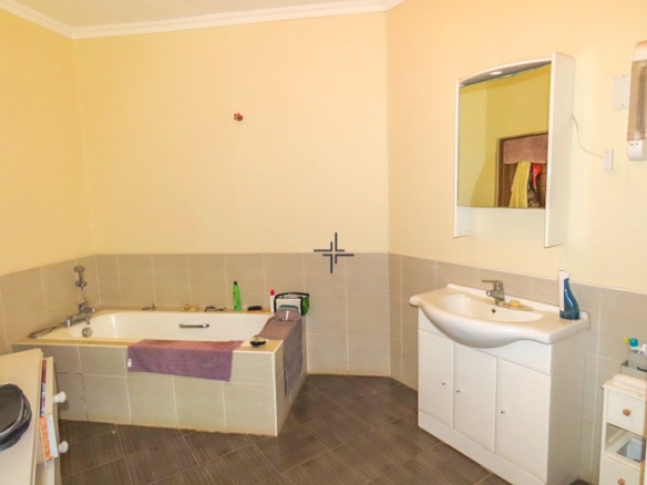 The 2-storey house boasts an open plan kitchen/sitting/dining room with a fireplace, a laundry room attached to the kitchen an ensuite bedroom and a large study on the ground floor. The first floor has an open lounge area and four bedrooms. Two of the bedrooms are ensuite while the two bedrooms share a connecting bathroom.