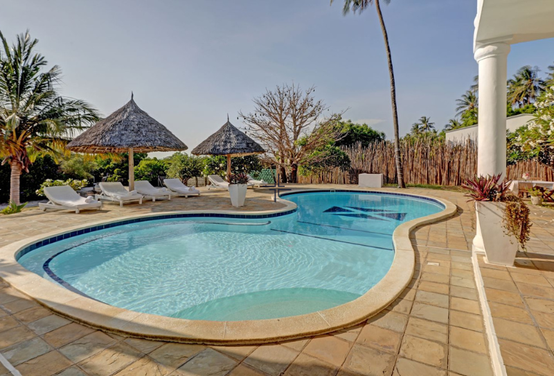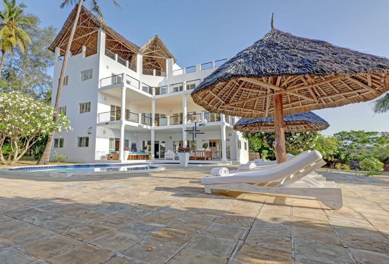 This stunning 5-bedroom house for sale in Watamu sits on 2-acres among the lush mangrove forest, offering breathtaking views over Mida Creek. Surrounded by fragrant frangipani and hibiscus plants, the villa provides a serene and tropical retreat. The property features a swimming pool, a jacuzzi and a private walkway, blending luxury with nature.
