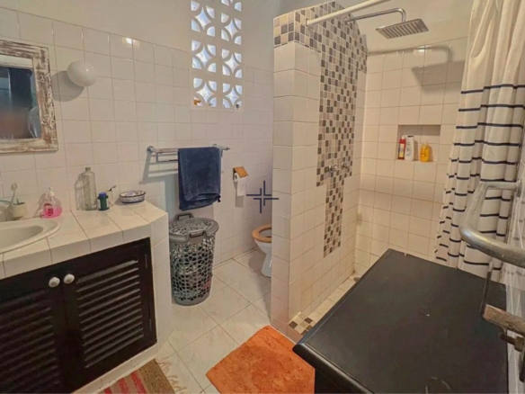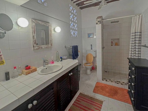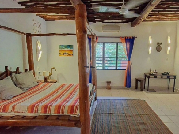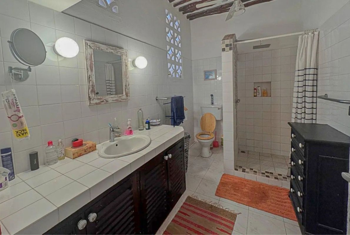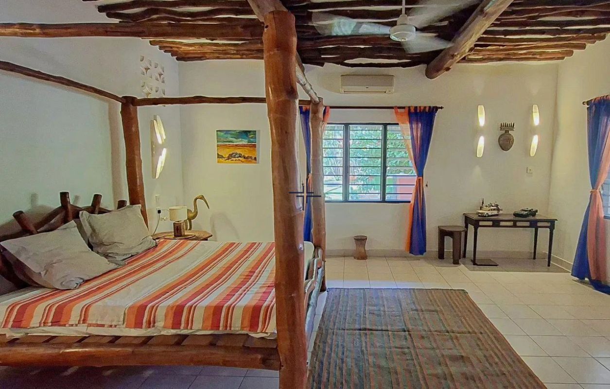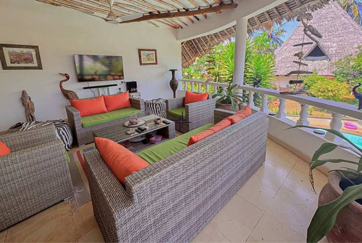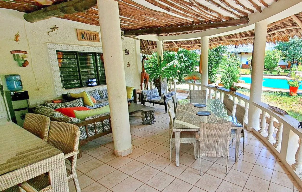 This is an inviting 2-bedroom house with a cottage for sale in Diani. The leasehold 3rd-row property sits on a 0.5-acre lush, tropical garden just off the tarmac road and only 740 metres from the beach.