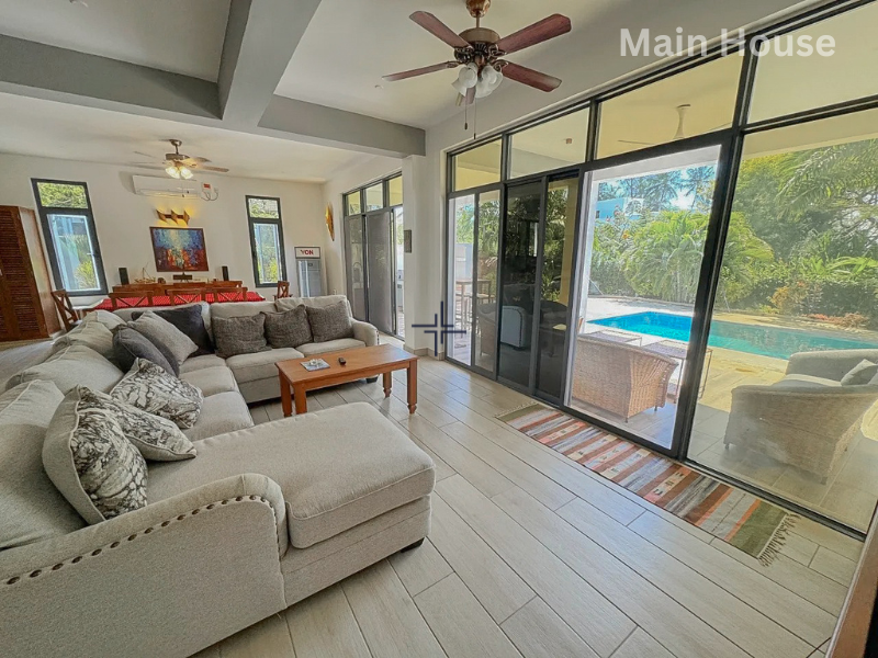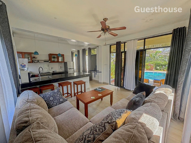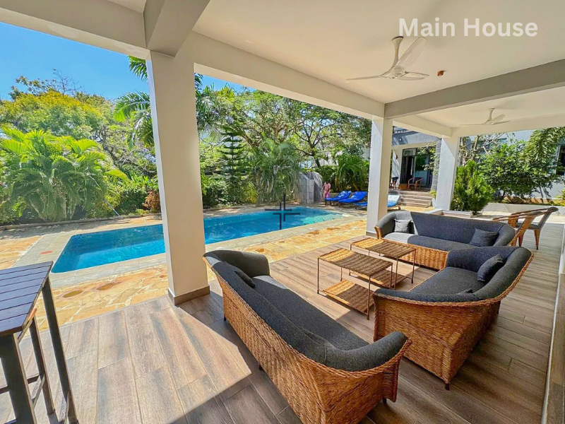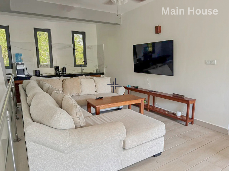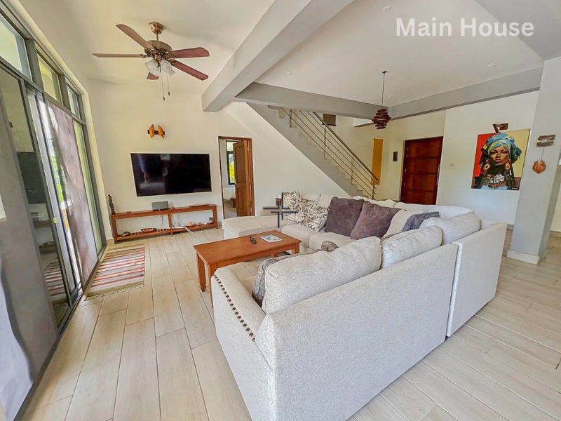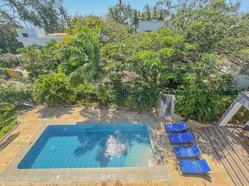 This is a modern 3-bedroom house with a guesthouse for sale in Diani. The home sits on a leasehold plot within an exclusive gated estate, just a 1-minute walk from the Indian Ocean.
