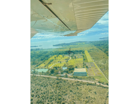 The sanctuary is located in a picturesque area adjacent to Crater Lake, west of Lake Naivasha. It spans 150-acres and features an 80-acre wildlife sanctuary with lake frontage, a 13-acre organic vegetable farm, a 4-acre garden centre, and 10-acres of botanical gardens, where cottages are planned for future development. An 816-metre airstrip also runs across the property. A dedicated 14-plot residential community has been carved out, with 2-acre serviced plots set aside in a single, cohesive block.