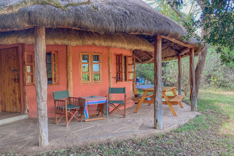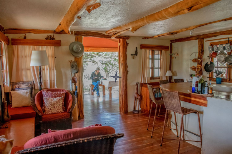 The cottage boasts an open-plan lounge/kitchen, one bedroom with an ensuite bathroom and a live-in verandah. There is also a separate rondavel with its own bathroom.