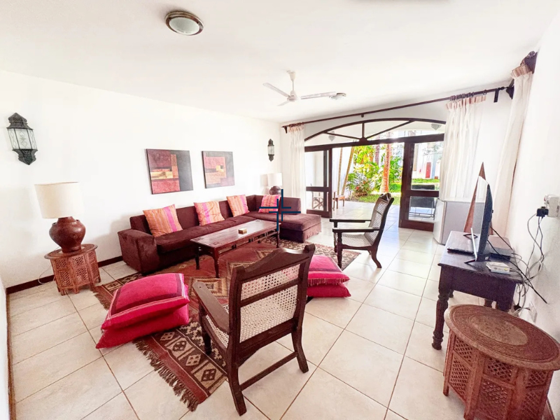 This spacious 3 bedroom Villa lies within a beachfront resort on the beautiful, pristine, white sandy beaches of Galu, Diani Beach.