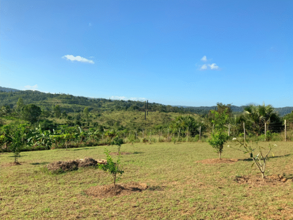 The land gently slopes down to a seasonal river and boasts fertile soil, making it highly suitable for farming. In 2023, 30 neem trees were planted on the property, and 1 acre is currently cultivated with maize, beans, cassava, and sweet potatoes.