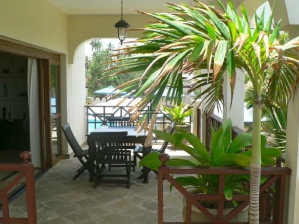 This property comprises of a 2-bedroom duplex serviced apartment for sale in Watamu with panoramic views of the Indian Ocean & Watamu Marine Reserve. The ground floor unit is fully serviced in a residential complex of 12 units with landscaped gardens. There is direct beach access to a private cove. The master bedroom ensuite has a private verandah and fitted cupboards. The twin guest bedroom has a verandah and ocean views. The luxury, modern fitted kitchen with breakfast bar looks into the open-plan sitting/dining room, which leads onto the front-facing covered verandah, ideal for entertaining.